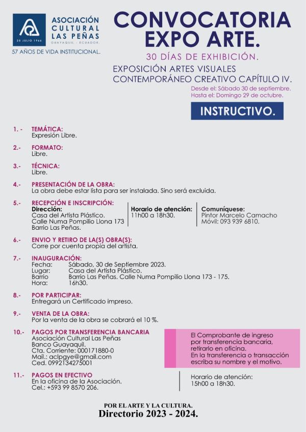 Asociación Cultural Las Peñas, les anima a participar de la Expo de Octubre 2023.