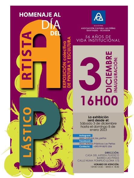 Exposición colectiva De Pintura y Escultura "DIA DEL ARTISTA PLASTICO" en la Asociación Cultural Las Peñas en la Ciudad de Guayaquil.