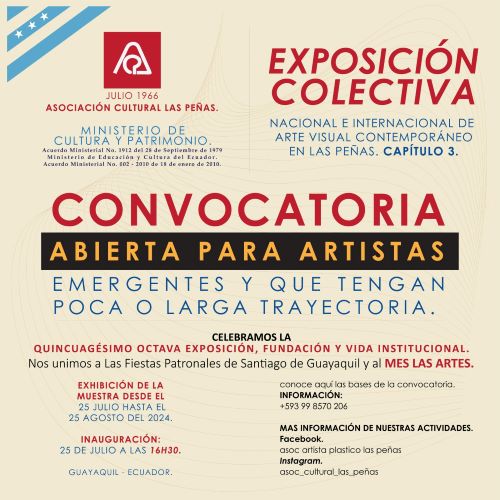 LA ASOCIACIÓN CULTURAL LAS PEÑAS, CUMBRE Y CUNA DEL ARTE GUAYAQUILEÑO, ha organizado un magno evento cultural para este año 2024. Desde julio de 1966, de manera ininterrumpida sigue impulsando el desarrollo del talento artístico a través de numerosas exposiciones.