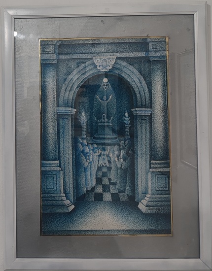 Autor: Antonio Orellana Título: Casa del Artista Plastico (Mini Fachada) Técnica: Madera-Arcilla y luces Dimensión: 18cm x 29cm |