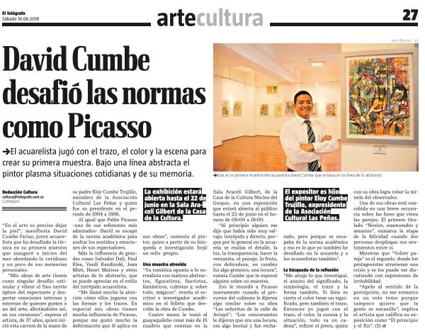 Con una carrera llena de logros y un constante interés por explorar nuevas formas de arte, David Cumbe continúa siendo una figura clave en el panorama cultural ecuatoriano, cuyo legado perdura tanto en las obras que ha creado como en las generaciones de estudiantes y artistas que ha formado.